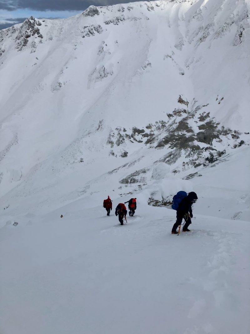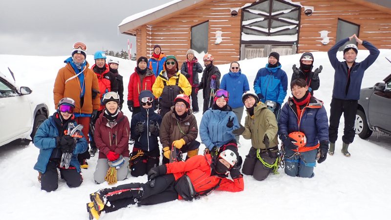 時折突風で視界不良になるものの、気温は例年より高く、程よい積雪で初心者でもアイゼン歩行がしやすい1日でした。