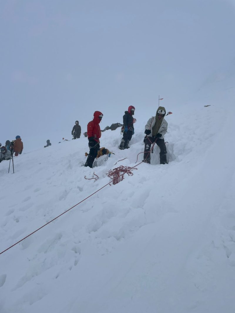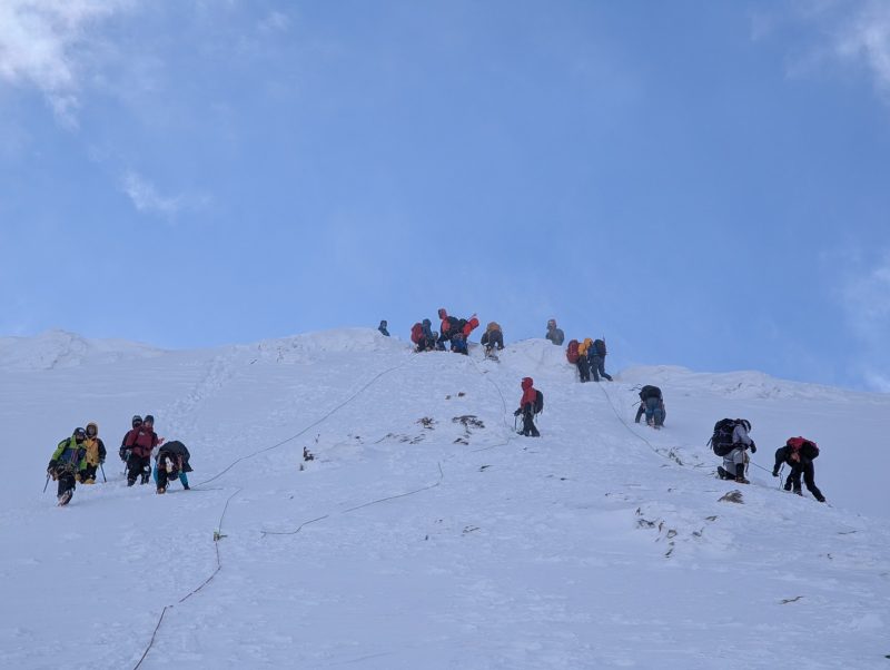 先行班が張ってくれたロープを使い、全チームとも無事に上富良野岳のピークにたどり着きました。