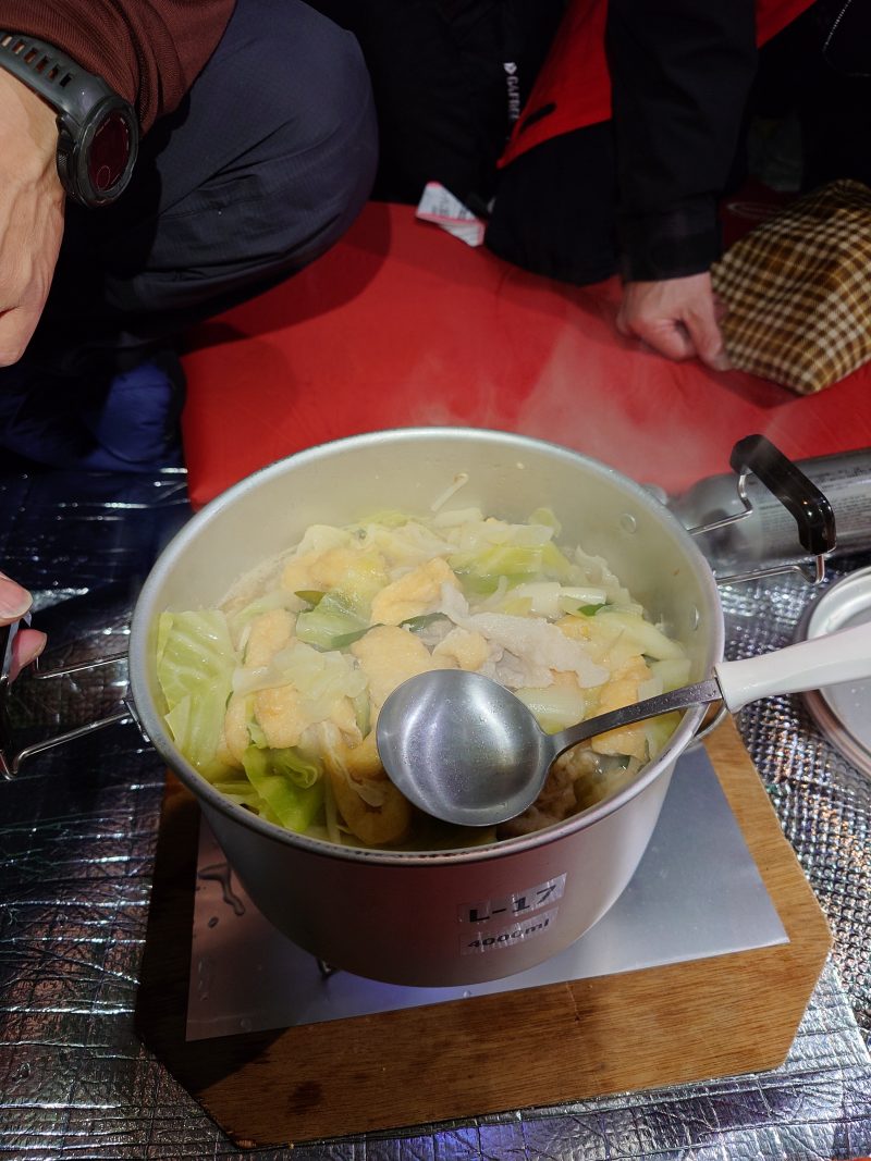 温まったテント内での食事や宴会は楽しい思い出になりました。
