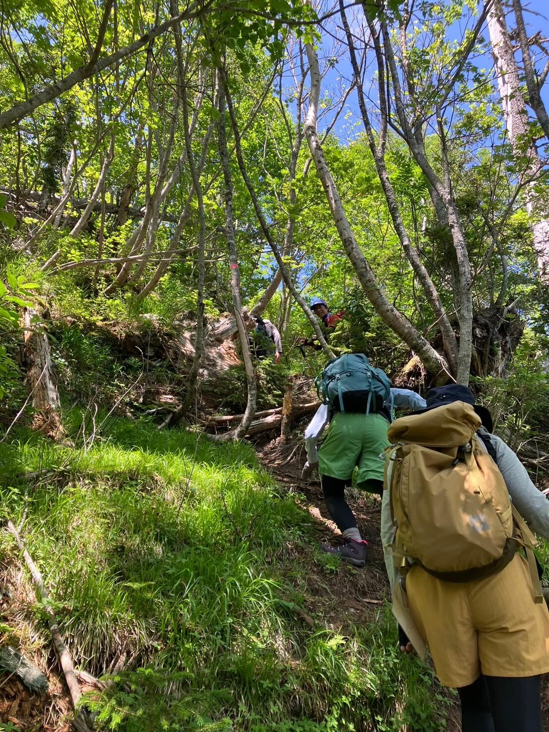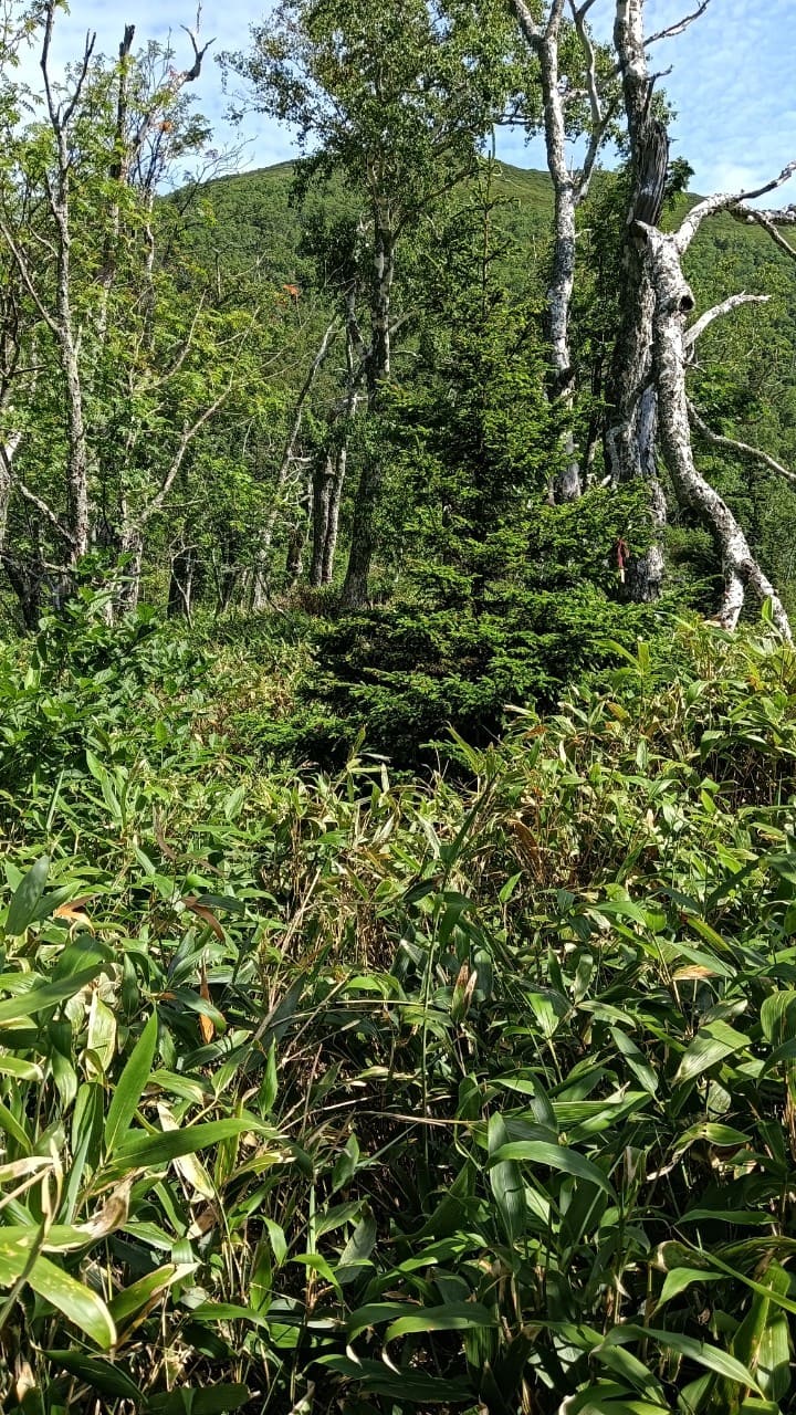Bチームより早い4時半にキャンプ場を出発したAチームは、東尾根→前ムカ→武利岳→前ムカ・武華山ピストン→東尾根下山というコース。猛暑の中の激登です。