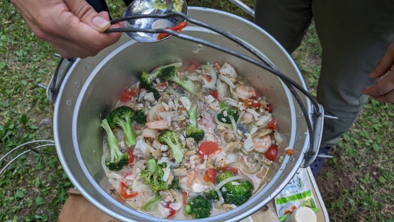 注)こんなに料理が豪華なキャンプやテン泊は滅多にありません。